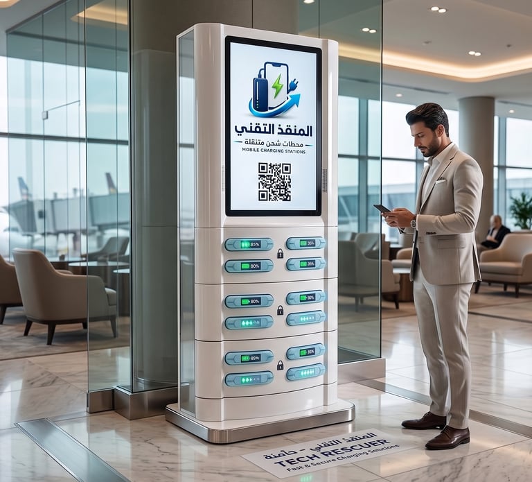 محطة 'المنقذ التقني' الذكية: حلول شحن متنقلة سريعة وآمنة، تضمن لك البقاء على اتصال دائم أينما كنت. استأجر، اشحن، وأكمل يومك بكل طاقة