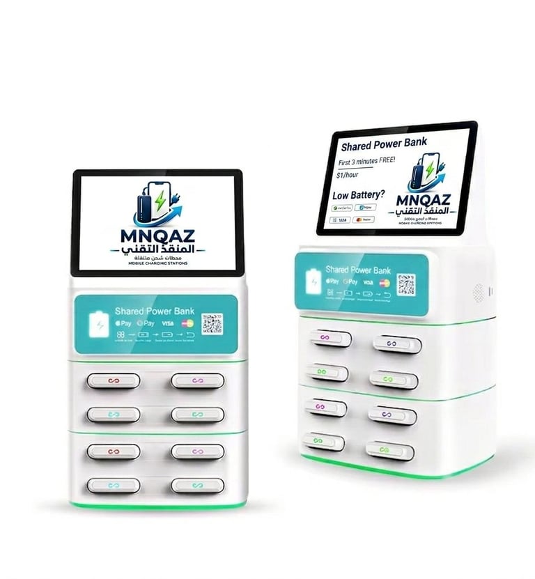 الفكرة بسيطة: بدل ما تبحث عن مقبس أو تنتظر شاحن، تقوم بمسح على المحطة، تبدأ الإيجار، تستلم باور بنك جاهز، وتشحن وأنت تتحرك. هذا النوع من الخدمات انتشر عالميًا لأنه يخدم المستخدم ويخدم المكان التجاري في نفس الوقت