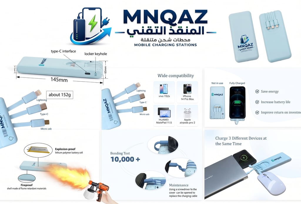 الإجابة: لا تقلق، أجهزتنا مصممة لتعمل بنظام الأوفلاين في حالات الطوارئ. بمجرد وضع الباور بنك في الفتحة المخصصة، سيتعرف الجهاز عليه ويتم إغلاق الطلب تلقائياً، وستصلك رسالة التأكيد بمجرد عودة الاتصال. نضمن لك عدم احتساب أي رسوم إضافية ناتجة عن مشاكل تقنية في المحطة